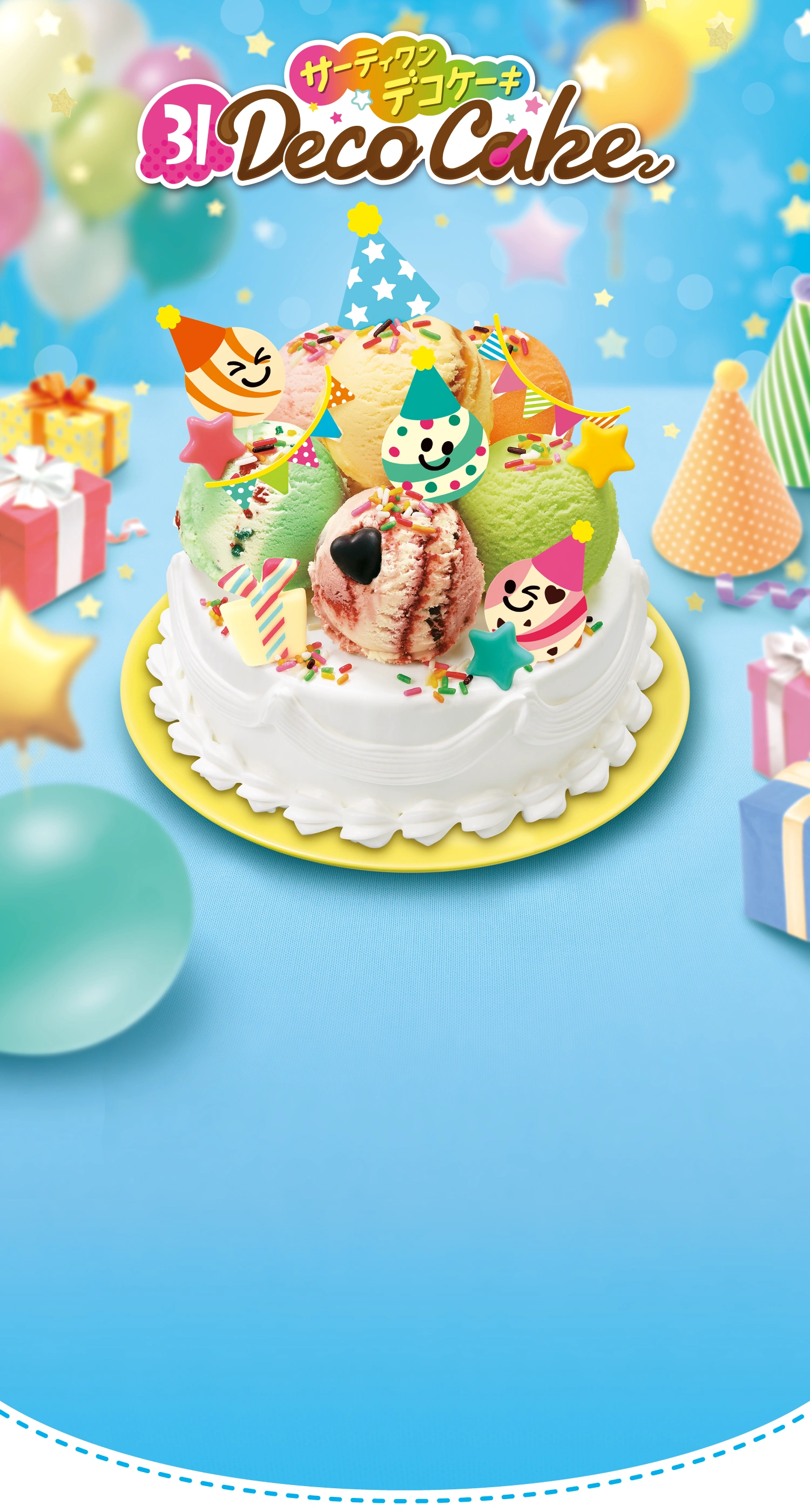 ※お持ち帰り後デコレーションするまでは、チョコプレートセット、トッピング、アイスクリーム、ケーキを冷凍庫にて保管してください。